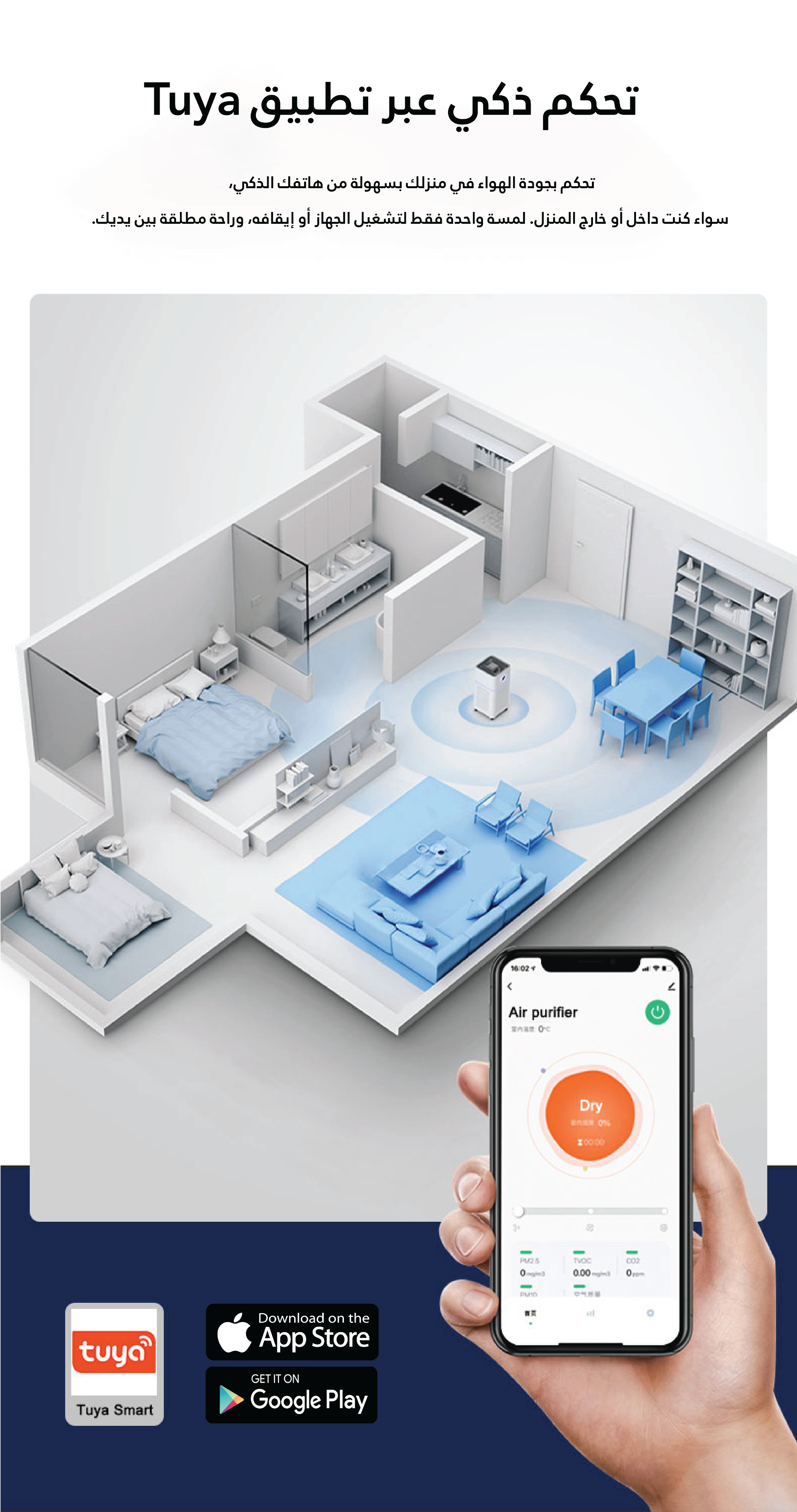يجمع هذا الجهاز بين أحدث تقنيات تنقية الهواء، التعقيم بالأشعة فوق البنفسجية، والترطيب الذكي مع العلاج بالعطر، ليمنحك بيئة نظيفة ومنعشة تحميك أنت وعائلتك.