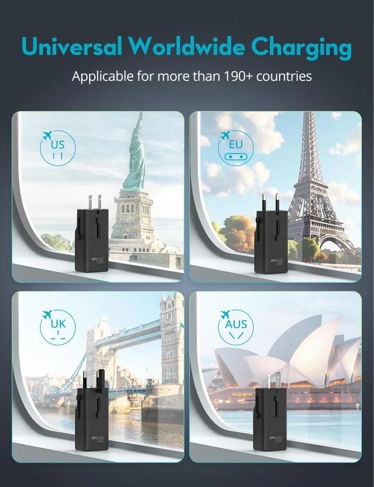 - يتوفر الشاحن مع شحن دولي لأكثر من 190 دولة، مما يجعله مثاليًا للسفر.