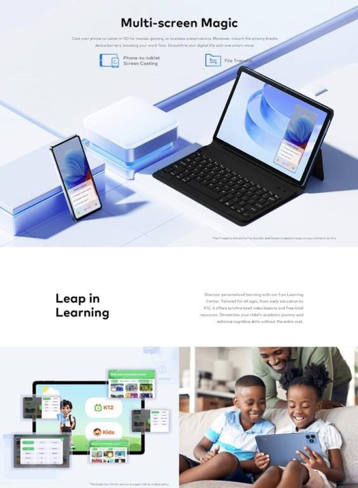 - شاشة كبيرة وواضحة: مثالية لمشاهدة الفيديوهات ولعب الألعاب.