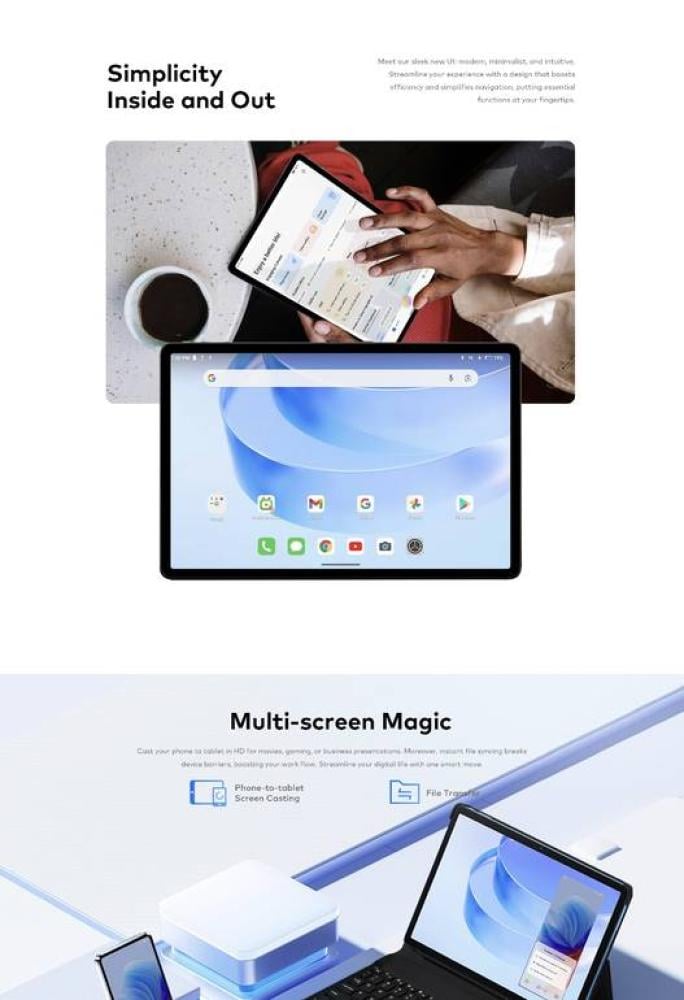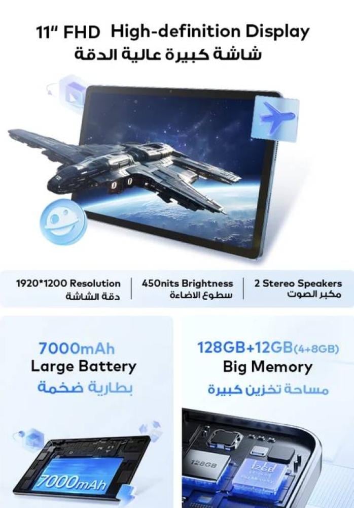 - الشاشة: شاشة IPS LCD بحجم 11 بوصة ودقة 1200 × 1920 بكسل، توفر تجربة مشاهدة ممتعة وواضحة.